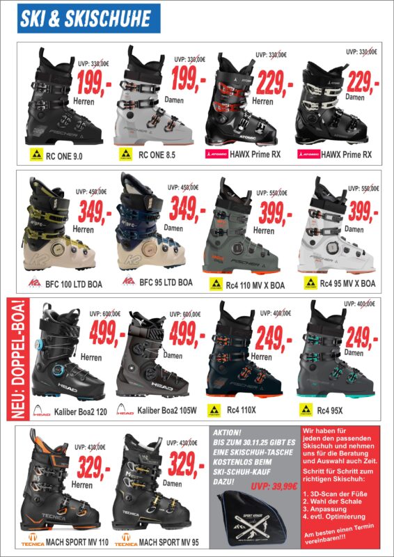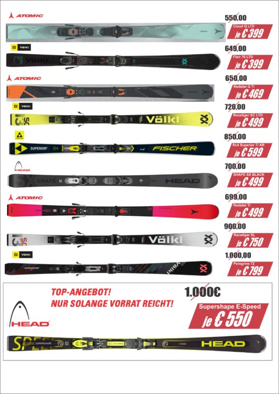 Viele Skiservice-Angebote, Skiverleih und individuelle Skischuhanpassung erhalten Sie bei uns von November bis April.